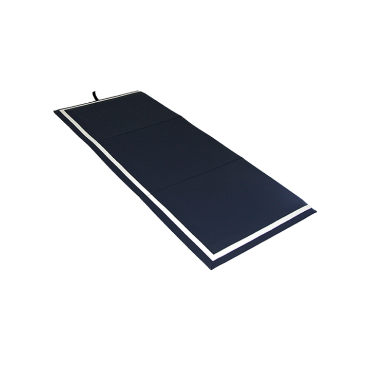 Its thoughtful design includes a beveled edge with a hard border, allowing wheelchairs to roll onto the pad safely while preventing the edges from curling. The cushion is low-profile at 25mm thick and can be easily stored under the bed or folded in thirds for portability, thanks to a convenient carry handle.